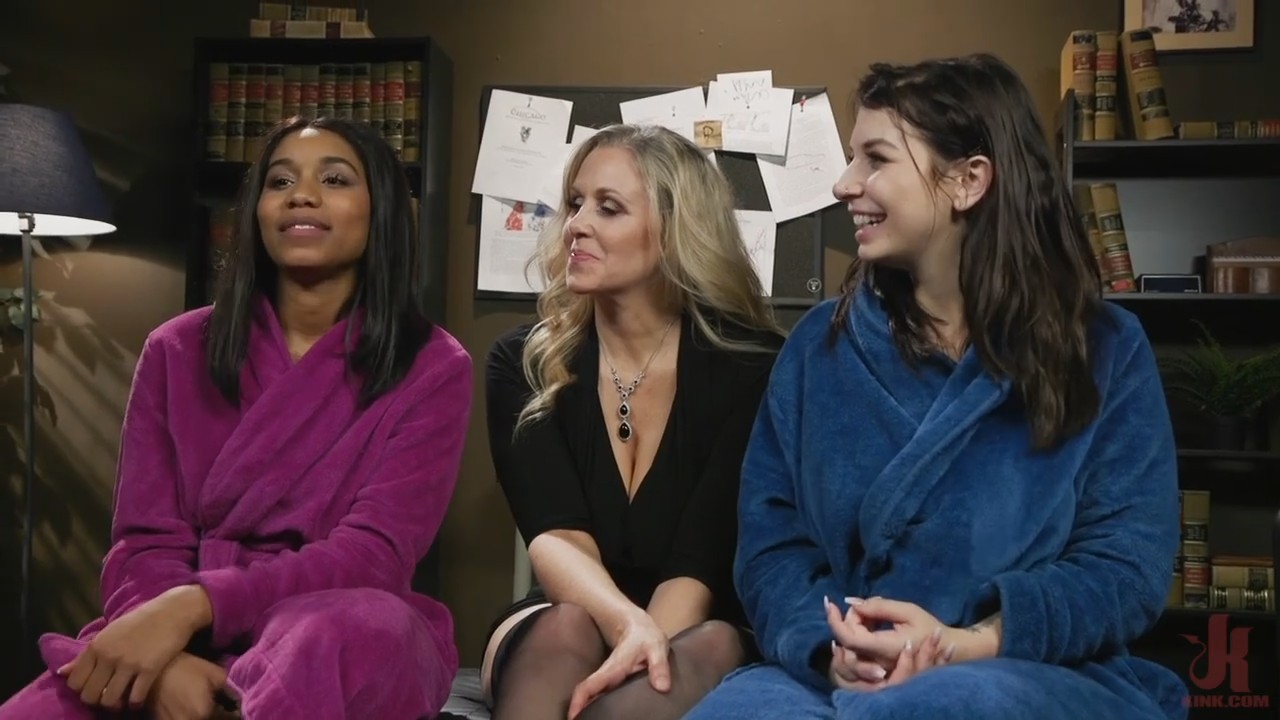 Волею случая в одну компанию попала и обворожительная негритяночка, и вполне ебабельная европейка, на которую совсем не стыдно и подрочить. Собрались они вместе с одной целью - узнать, что такое "фемдом", и получить какие-то новые ощущения от осознания полного сексуального подчинения другой девушке. Матерая Госпожа сразу поставила их раком и отстегала плеткой, чтобы те не думали, что в сказку попали, а затем связала их и заставляла делать унизительные для них вещи, вовремя подмешивая туда приятные моменты, в результате обе девки получили громадное удовольствие.