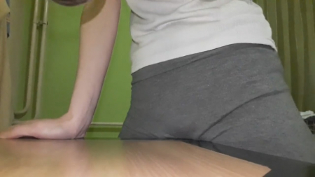 Шоркается вагиной в штанах об угол столаHD
