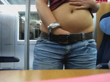 Слегка поехавшая эксгибиционистка родом со страны октоберфеста решила пересечь страну на скоростном поезде. И судьба распорядилась так, что сидела она в пустом вагоне. Ну как тут не включить фронтальную камеру на телефоне и не начать показывать в нее свои шарообразные большие сиськи? А затем сразу на автомате запихать руки в трусы, дабы хорошенько пошликать пока есть возможность. Но обстоятельства изменились - пришлось оперативно запереться в туалете и уже там устроить настоящий фестиваль мастурбации, поставив камеру в удачном ракурсе снизу.
