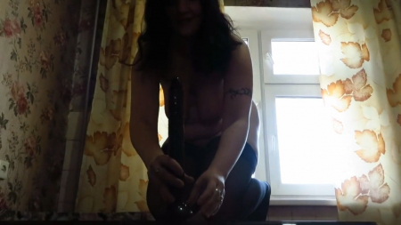 Телочка "в теле" приклеивает к стулу резиновый член. Девушка скидывает с себя халатик и остается в черных чулках. Она начинает насаживаться на тонкий член вагиной и стонать. Но телка любит не только трахать себя в вагину, но еще и в попку. А для анала чикуля приготовила резиновый член, но потолще.