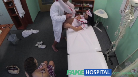 Девушка пришла на осмотр к сексологу и после небольшого опроса и осмотра врач уже понял как следует лечить девушку и чем ей помочь. Мужчина позвал сексапильную медсестру в коротеньком наряде и начал трахать на глазах у пациентки. Немного спустя времени мужчина предложил молодой девушке присоединиться к ним и пациентка согласилась.