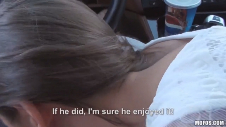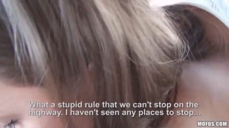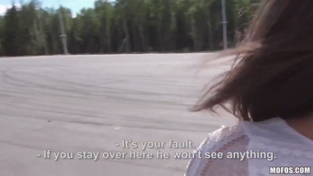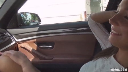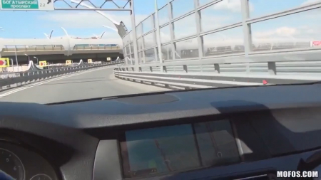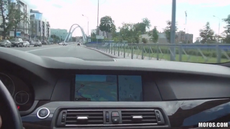 Парень катился по своим делам на bmw x6 черного цвета, очень привлекающего внимание женского пола. Вдруг он увидел на крайней правой полосе припаркованный белый десятый лансер, возле которого кружилась симпатичная девушка. Оказалось, что она захлопнула дверь, а ключи остались в машине и стройняшка ждет помощи от какого-либо мужчины, на самом деле, обманула. Им и оказался начинающий оператор (так он наврал легкодоступной новой знакомой, согласившейся прокатиться на быстрой тачке). Уже в машине чес в районе пизды усилился и девка сняла трусики, случайно вылетевшие в окно кому-то на лобовое стекло. Ребята заехали на стоянку, где русской симпатяжке влетело по самые помидоры в попку.