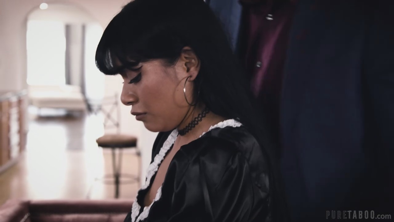 На пороге появилась грудастая девушка азиатской наружности. Она пришла устраиваться домработницей к состоятельному господину, вызывающего недоверие с первых секунд, но так как работы для иммигрантов не хватает, пришлось смириться со странноватым грубым поведением хозяина. В первый рабочий день мужчина стал домогаться нанятую прислугу, трогая ее попку, нюхая густые темные волосы, как и сама их носительница. Потеряв берега, наглец вставил хуй домработнице, трахнув сперва ее в костюмчике, после чего оставив без одежды на холодном кухонном столе. После соития брюнетка получила удар, после которого поняла, что нужно сказать начальнику спасибо.