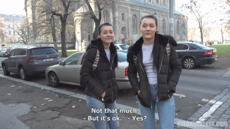 Рядом со школой притаился странноватый парень с камерой. Он ловит незнакомых девушек и пытается разговорить. Вот идут сразу две жертвы, слегка смутившись неожиданному обращению. Сперва они попытались игнорировать вопросы, так как родители научили не разговаривать с незнакомыми, но пара сотен сыграли свое дело, девчонки позволили побеседовать. Они неспроста так похожи - это родные сестры, идущие домой и, к счастью или сожалению, не успевших туда попасть. Близняшки согласились показать сиськи на улице за дополнительную сумму, а когда увидели пачку купюр, отправились погостить, где круто потрахались, показав разный темперамент несмотря на внешнюю схожесть и нажив месячную зарплату за один час.