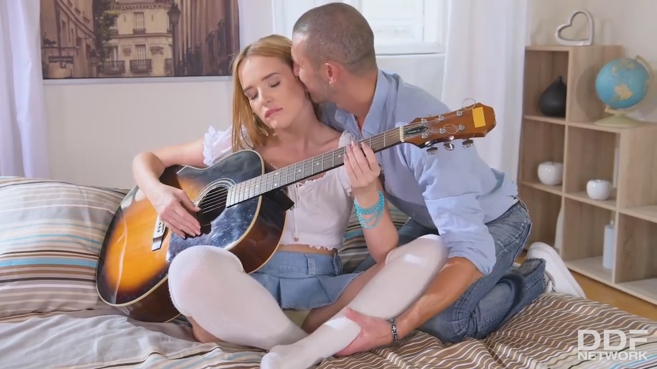 Самочка из России в зарубежном пореве должна извлекать из гитары коричневые ноты, отыгрывая роль начинающего музыканта. К сожалению, выглядит и слушается это крайней степени отвратительно и тут появляется он - наш спаситель. Носатый чувак сам попробовал навернуть квинту, но кривые пальцы повторили "успех" предыдущего гитариста. Вместо этого бойфренд достал толстый банановый хуй, предложив научить играть на кожаной флейте. Много ума тут не надо, а девочке понравилось проводить время на кровати с пользой. Влагалищные стенки полностью заполнились мясным рулетом, обкончавшим небольшие сиськи и частично язычок.