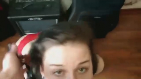 Симпатичная деваха любит давиться хуем своего господина. Она всегда преданна как собачка, работает языком и ротиком умело. Вот она вновь стоит на коленках перед любимым, который держит ее за поводок и глубоко заглатывает, выпучивая глаза. Когда делать нечего, парочка только и дело трахается, либо играет на гитаре, как раз за симпатюлей притаился небольшой гитарный комбик известной марки. Малышуля и так отлично заглатывала странной формы член, а в финале показала на что способна, надув щеки и проглотив хуй, из которого прямо хлынула белая соленая жижа.