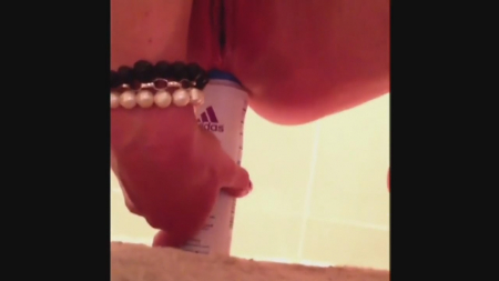 За неимением некоторых секс игрушек, маленькая извращенка воспользовалась баллончиком Адидас. Он как никогда может выручить пошлую девочку, закрывшуюся ото всех родных и проблем в ванной комнате. На фоне слышно как набирается вода, это служит отвлекающим эффектом, чтобы никто из домашних не додумался подслушать чем там занимается девушка. Флакончик угодил прямиком в задницу. На заводе, если бы он был живым человеком, он не хотел бы стать анальной игрушкой в руках развратницы, но служить на благо человечества выглядит не худшим предназначением, даже для одной хозяйки.