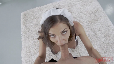 Девушка из России мигрировала на загнивающий Запад, чтобы найти там жениха и жить припеваючи. Но чтобы хватало на покушать, пришлось устроиться на работу. К счастью, в объявлении попалась целая колонка с содержанками, а рядом с ней предложение работы прислугой, в том числе домработницей. Несколько отлетели сразу, но услышав знакомый адрес в богатом районе, симпатяга согласилась. Она купила откровенный костюм с короткой юбочкой и при каждом удобном моменте флиртовала собственным видом с парнем, который живет один и не против трахать в попку хорошенькую горничную. В будущем из этого романа может сложиться полноценная семья.