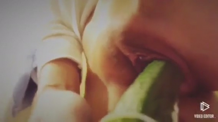 Бесспорно красивая пизденка показана крупным планом не просто так. Ее извращенная хозяйка где-то в интернете на форуме онанисток вычитала, что можно испытывать оргазм от подручных предметов, в том числе и продолговатых овощей. Действительно, если натянуть резинку сверху, подобрать нужный размерчик, то он неплохо заменяет мужской половой орган, предназначенный, в том числе, для удовлетворения похотливых девиц, типа этой. Не понятно как там на счет оргазма, но определенное удовольствие девушка получила, засняв на память первую попытку дрокнуть молоденькую пизденку огурчиком.