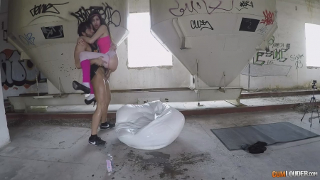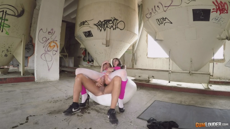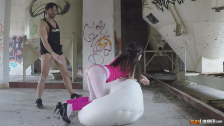 Одному знакомому некая девушка отправила геолокацию, предложив встретиться в необычном месте. Он незамедлительно приехал и обнаружил внутри заброшенного производства подругу с прикрытыми маской для сна глазами, а также прикованной цепью к шее. Чувак не растерялся и сходу зарядил шлюшке за щеку, грубо заставив сосать твердый как камень член. Брюнетка беспрекословно выполняла все требования, возбуждаясь сильнее от шлепков по телу и лицу. Облитая маслом и с разорванными штанами молодуха получила крутой трах, проглотив сперму не успевшего подняться и застрелить в рот ебаря, похваставшись проглоченными выделениями яиц.