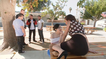 Новые лица в маленькой деревне сразу замечаются местными. Несколько здешних фриков обсуждают новенькую, которая перевелась из города и вся такая из себя правильная и вежливая. К ней подошла познакомиться заводила - подружка этих долбанутых ребят, которые никогда в жизни девушек не видели голыми, кроме как на старых картинках в журналах, хранящихся возле сельского толчка. Узнав немного поближе о новенькой, сучка написала той письмо с просьбой подойти к определенному месту. Почти на пороге один из неадекватов набросил куртку девушке на голову и потащил с друзьями в сортир, где всей толпой заставили сосать, после чего утащили в менее мерзкое место дабы продолжить постановочное групповое изнасилование. После окончание съемки дебютантке похлопали, поздравив с первым жестяком.