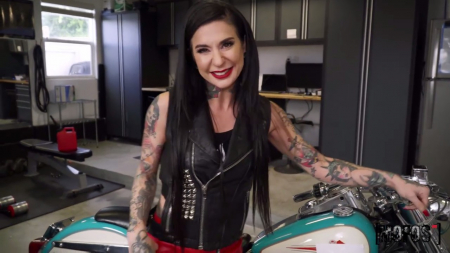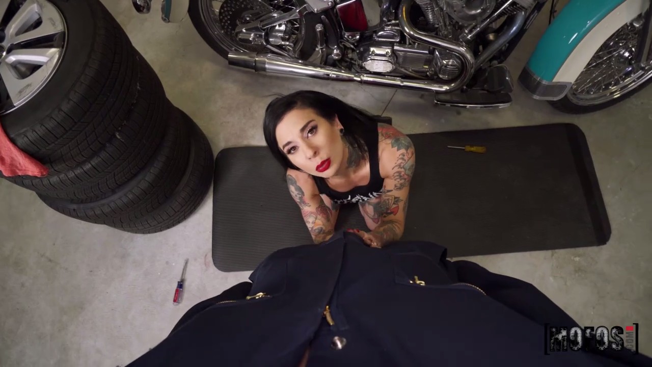 Мужчина кого попало не пускает в большой оборудованный гараж, главным экспонатом которого является дорогостоящий уличный мотоцикл с огромным двигателем совсем рядом с замененными покрышками от автомобиля. Татуированная брюнетка заинтересовалась не только мототранспортом, но и его владельцем. Через штаны парня пробивается мощное достоинство, которое сложнее скрыть, чем количество кобыл под крышкой двигателя байка. Милочка долго не уламывалась, напротив, сама напросилась побывать на хуе байкера, неожиданно для себя открыв мир сквиртового оргазма. Несъемное сидение стало одним из мест страстных фрикций, во главе с холодным полом гаража.