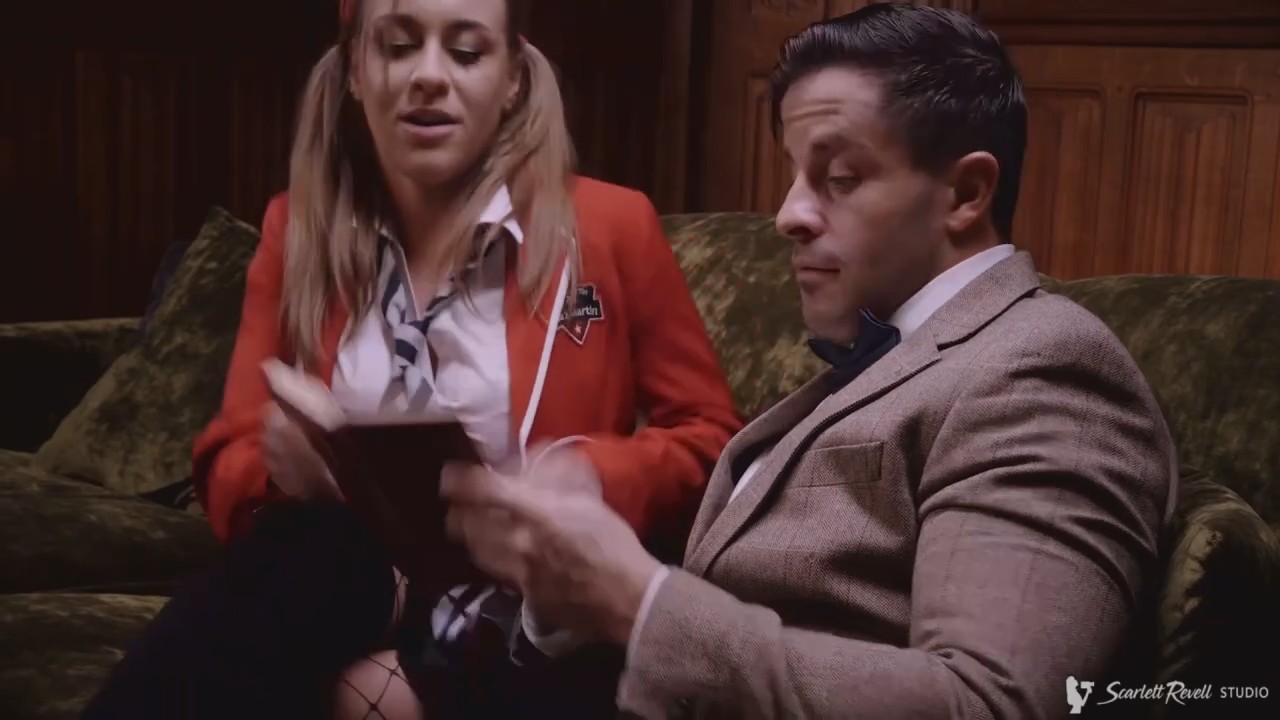 Хитрая студентка узнала, что приехал ревизор в виде строгой блондинки с указкой на дорогом автомобиле с личным водителем. До министерства дошли слухи, что в данном колледже для девочек творятся ужасные непотребства. Они не только спят между собой, но и профессора нечужды трахнуть молоденьких красавиц у себя в кабинете. Даже старый директор промышляет подобным. Одна из студенток узнала о проверке и решила выпереть с работы молодого профессора, к которому пришла на диван когда он читал книгу и схватила его за член через штаны, трахнув его шикарным телом с натуральными сиськами, болтающимися туда-сюда, но очень зрелищно. Теперь любовников застукают и наказания мужчине не избежать.