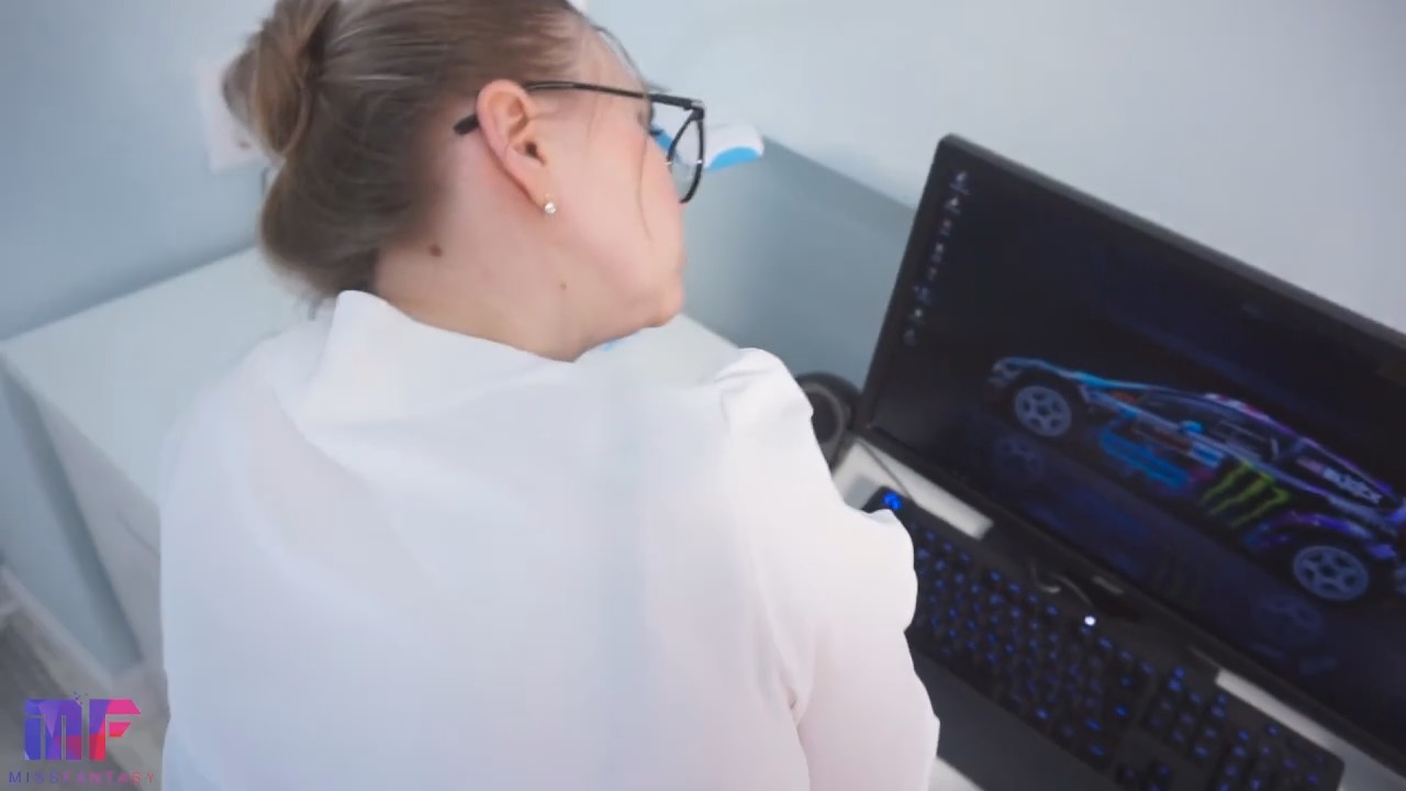 Требование перевести всех на удаленку коснулось даже секретарши, которой до сих пор есть чем платить зарплату. Оказалось так выгодней - не нужно тратиться на проезд и пожрать в кафетерии. Но качество работы ухудшилось, ведь ее сожителю так понравилась строгая офисная одежда, что член сам реагирует и зовет трахаться, а девушка в очках не может отказаться от такого удовольствия. Прямо на столе не отходя от компьютера она раздвигает ножки и отдается, потрясывая приличным бюстом. Теперь супруг начнет ревновать, ведь когда секретарша вернется на работу, мужики вновь продолжат пускать слюни на занятую сексапильную бабу.