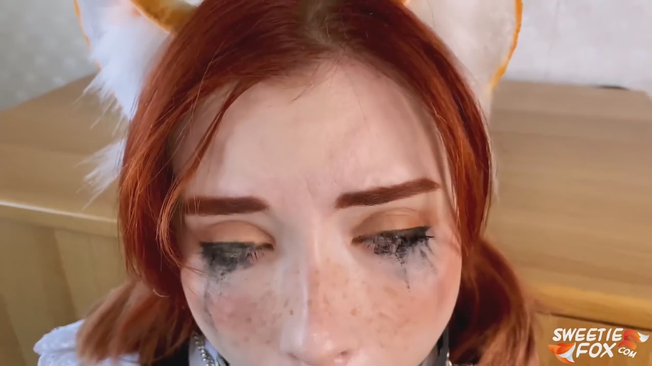 Чудесный пошарпанный пол, пару десятков лет требующий ремонта. Сразу понятно, что мы перенеслись в постсоветский город. На нем сидит натуральная рыжуля с лисичьими ушками на голове, руками как настоящее животное прося что-нибудь положить в ротик. У хозяина, к сожалению, нету ничего с собой для симпатяги в школьной форме, так что придется лисичке просто пососать. Это выделит много слюны и голод отступит на какое-то время. Тут на слабовидящей красе появляются очки, они как то ружье - обязательно должно выстрелить. В данном конкретном случае они выстрелить не могут, а вот на них накапали спермы изрядно.