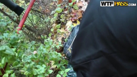 Парень с видеокамерой подошел на улице к симпатичной девушке и предложил заняться сексом. Шлюшка долго не сомневалась. Ребята отошли немного в сторону от дороги, где девка сосет и прыгает на члене.