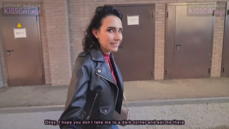 На перекрестке стояла милая девушка в кожанке, к ней подошел парень с камерой, желавший поговорить. Незнакомка ждала такси чтобы добраться до универа. Этот прохожий соврал, что тоже туда направляется и предложил подвезти, якобы его мерседес стоит рядом во дворе. По пути он разговорил веселую брюнетку, которой признался, что никакой машины нет и ему просто хотелось познакомиться. Такой как она не нужна учеба, все и так будет хорошо, уж тем более не всрался матан. Чувак рассказал как снимает фильмы для взрослых и новоиспеченная подружка стала новой актрисой. Подыграв пикаперу симпатяга показала сиськи, потом еще раз и согласилась пройти с детской площадки на лестницу, прилегающую с улицы к одной из жилых высоток. Так, оставшись с ночевкой у подружки, студентка не доехала до универа на следующее утро.