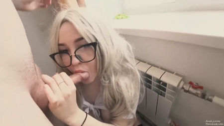 Симпатичная очкастая няшка в субботу убиралась дома, вытирала пыль отовсюду, куда дотягиваются руки, в том числе и на подоконнике. На порнхабе написано, что регион любительницы США, но если судить по виду за окном и домашнему ремонту - это точно где-то в странах СНГ. К малышке в сексапильном белье подкатил сзади молодой человек, решивший не терять времени и прекратить скучное занятие подруги, вставив ей член в мягкую киску. Снаружи ходят хмурые люди, совсем рядом - это же первый этаж, жаль стеклопакеты не пропускают звуки наружу. Кончил парень в ротик юной красавицы.