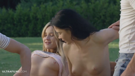 Одна стройная шлюшка так разморилась под жарким июньским солнцем, что решила помастурбировать в зеленом парке, надеясь, что никто не будет проходить мимо и не помешает. Но тут по случайному стечению обстоятельств пробегал ее бойфренд, который решил угостить даму кунилингусом. Позже из леса вышел и его товарищ, которому он доверил присоединиться к девушке. Она почти сразу поняла, что не сможет справиться одна с двумя членами, хорошо, что та была совсем рядом. Ролик к русскими красавицами, к несчастью, не полный, вторая часть секса вчетвером на лавочке попросту отсутствует.