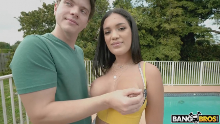 Сочная брюнетка гордится своей задницей, лицом и сиськами. Это первое что она показала прежде чем раздеться и залезть купаться в бассейн, куда к ней присоединился актер, дав немного поплавать перед тем как вставить первый раз в нее хуй. Это совсем другие ощущения - трахаться в басике, жаль ролик посвящен этому не полностью, а только вначале латинка жахается под водой, а потом любовники выбираются под навес, где стоит удобный диванчик, где они продолжили сношение. Гладко выбритая внизу телочка захотела сесть на лицо чуваку за сделанный минет, а самовлюбленный мальчик постоянно поправляет причесочку, чувствуя себя не ебаться каким мачо.