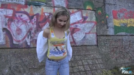 Двое молодых людей подошли к оператору с вещами, среди которых был плед, постеленный позже на землю. В этом месте редко бывают люди, а те, что разрисовывают стены - это не про них вообще. 25-летнюю девушку по имени Петра сфотографировали в нескольких позах, она разделась и начала доказывать умение заниматься сексом перед камерой. Почему была выбрана для этого улица, а не снято подходящее помещение - не понятно, но зато телка точно показывает устремленность и бесстрашие на своем первом порно кастинге. Парнишка уже было собирался кончить на малюсенькие сиськи, но понял, что оргазм еще не подступил и вновь стоя вошел в одноразовую подругу.