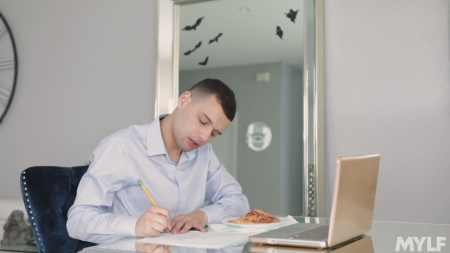 Джонни очень хотел не пойти сегодня на учебу, но настырная мачеха ударом по голове смогла поднять парня, заставив его одеться и сделать то, что он должен сделать. Через несколько часов зевающий парнишка вернулся. Он явно не ходил в школу, а бухал где-то с друзьями. Раз так, ему придется сразу сесть делать уроки под присмотром. Но даже тут он попытался свалить и был пойман с ключами от автомобиля родительницы. Придется остаться дома. Как раз матушке потребовалась помощь - рука застряла в дырке от раковины. Спешить вызволять из передряги пацан не поспешил, вместо этого он присунул своего неваляшку в дырочку женщине. Потом они вместе ушли на диван, где продолжили со странным окончанием на шею.