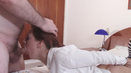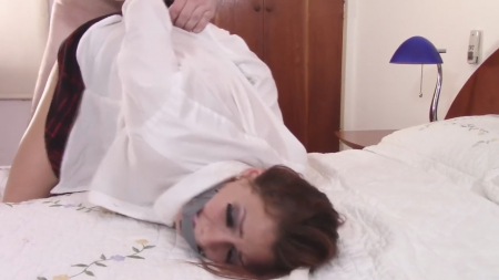 Психически нестабильный мужчина пробрался в дом к своей жертве, застав ее врасплох и очень привлекательной одежде как у школьницы. Силы были не равны, потому девушка оказалась со связанными руками и залепленным скотчем ртом. Только он не учел, что нужно было сделать это после того, как даст в рот, хотя стоило побояться острых зубов, которые с легкостью прокусят/откусят пенис. Пришлось сдергивать липкую ленту, резко затыкать хуем и прилеплять обратно, жадно пихая в намокшую дырочку. Даже если она сопротивляется, у пизды тут нет хозяйки. Так и выла до конца ролика, не сумев высвободиться.