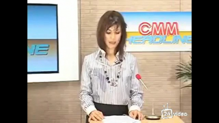 Симпатичная ведущая читает новости в прямом эфире, а в это время двое парней дрочат на милашку и кончают ей на голову и лицо. После один из парней начал жестко ебать ведущую, а девушка продолжала читать новости.