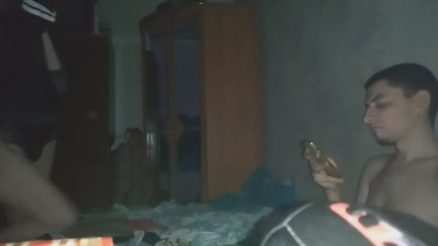 Негордый паренек остался с другом и двумя девушками после тусовки, все достаточно пьяные чтобы заняться свингерскими делами на съемной квартире ночью под включенную музыку. Темненькой больше всего хочется: ходит в одной футболке без трусиков, раздвигает перед телефоном ноги, подруга в очках ей дрочит писечку, а потом сразу вставляется пенис. Самое интересное, что это телка оператора и трахать его "любимую" собирается друг, а сам он лишь дал пососать, восхищаясь красотой классной девчонки - частой участницей домашних вписок. Ну для братика ведь не жалко, ага.