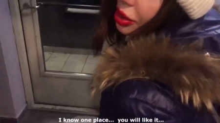 В ночное время парень вышел покурить, но его перехватила соседка с этажа. Она поинтересовалась присутствием его жены дома, а сама повела в лифт, где нажала кнопку последнего этажа. Уже в металлической кабине сучка в шапочке показала голую грудь, животик тоже у нее хорош. Молчаливого соседа как маленького мальчика за ручку повели на подъездную лоджию, где брюнетка отсосала, дала раком и еще немного они потрахались на черной лестнице. Стоны гулко разносятся вниз, но "наши глаза" в этот момент больше не могут сдерживаться и кончают на живот, почти достав до красивых сисечек.