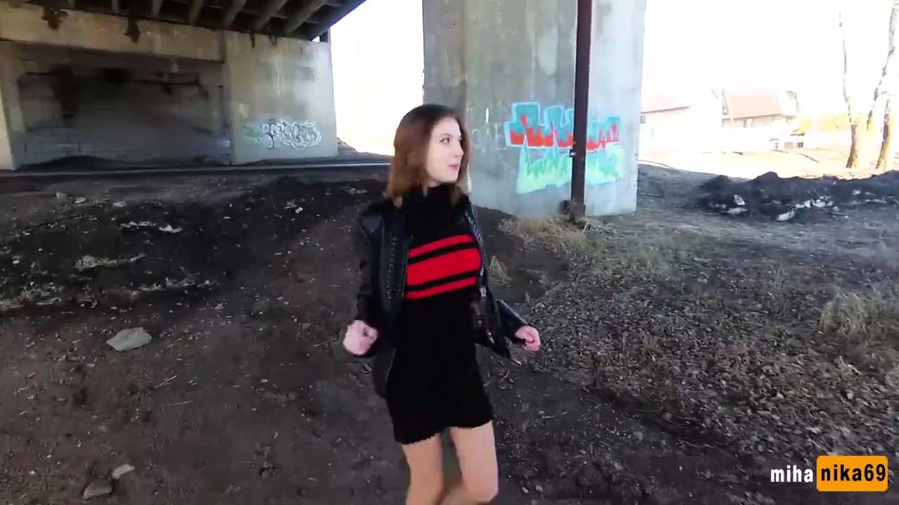 Где-то недалеко от города в деревне, где ведут неравные бои граффитисты и работники ЖЭКа, есть одно почти укромное местечко под мостом, которое редко в дневное время посещают рисовальщики на стенах, потому что находятся еще на учебе. Молодая пара нашла место куда можно спрятаться совсем рядом с частными домами. Оглядевшись по сторонам, девушка сняла с бойфренда штаны и начала сосать его трепещущую шишку, готовую разорваться в любую секунду от возбуждения. Ребята забыли взять салфетки, так что после окончания между сисек россиянки, пришлось просто надеть сверху кофту, уходя быстрым шагом.