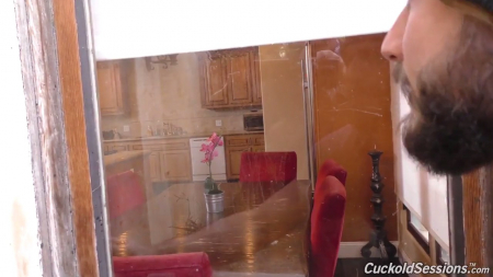 Возвращаясь домой, парень встретил чернокожего друга, который разговаривал по телефону о его жене. Поняв что происходит, белый куколд побежал к окну всматриваться. А там картина следующая: рыжая шлюха стоит на кухне между двумя неграми и мило беседует, опускаясь вниз им отсосать. Далее бабу жестко дерут на диване, в том числе и сразу двумя членами в киску и задницу. При этом у куколда начала вставать шишка, которую он дергал продолжая подглядывать в окно. Когда его ненаглядной напускали в рот, идиот в шапке соизволил зайти домой. Негры разбежались как тараканы, а перед супругой пришлось признаться в том, что он все видел и хочет тоже кончить в рот как те парни, но спермы не дождались и она вальяжно ушла.