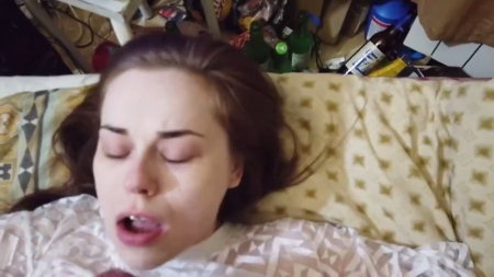 Русская телка с самой незаурядной внешностью и небольшим начинающимся животиком сразу встала в привычную позу. Даже не давая в рот ее молодой человек подошел с выпирающими трусами, погладил любимую в жарком месте, снял с обоих трусы и стал долбить подружку сзади. Пару снимают сразу две камеры - одна перед ее лицом, другая стоит сбоку кровати. Почти полностью видео девушка простояла на коленках, иногда заводя руки назад, чтобы как за поводья держался молодой человек. Перед оргазмом русская парочка приняла миссионерскую позу и парнишка накончал на плотно сжатые губки.