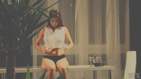 Одинокая жительница просторной квартиры грустно разглядывала фрукты на столе. Это сегодняшний ее ужин. Ей хочется прямо сейчас почувствовать себя желанной, способность человека фантазировать помогла пережить этот несчастный день, чтобы завтра начать новый. Она стала представлять как мастурбирует при гостях, когда несколько человек, мужчины и женщины, сидят вокруг за столом и смотрят на ее обворожительную фигуру, как пальчики проникают внутрь, а на фоне играет классическая музыка. Испытав оргазм, одиночка вновь оделась и довольная пошла спать, надеясь, что во сне придется еще немного эротически пофантазировать.