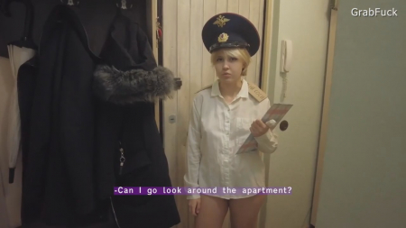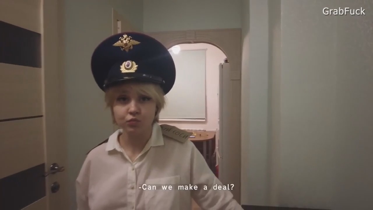 Под речитатив "Кровосток" молодой человек закурил трубку с неизвестным содержимым на кухне, запив интересным чаем. Тут же ему в дверь позвонила полицайка - якобы ее вызвали соседи на шум. Странно, но девушка в форме с погонами "хуй соси" на плечах отсуствовали штаны как таковые. То ли накуренный наркоман так видит, то ли действительно ему сегодня свезло. Как минимум, незваная гостья полностью проверила все подозрительное и согласилась пойти на должностное преступление - переспать с неудачником у него в комнате. Хм, тут и анальная затычка вставлена заранее, явно готовилась к подобному.