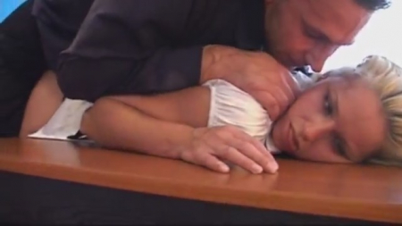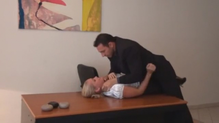 Фотограф принес начальнице новые фотографии, которые ей так сильно не понравились, что дерзкая блондинка попросила покинуть ее офис немедленно и больше никогда не возвращаться. Поначалу подчиненный хотел просто уйти, но нельзя так покидать нагретое место. Он неожиданно набросился на босса, обхватив руками шею и стал душить на столе. Пытаясь отбиться, девушка (по некоторой информации это актриса Kathia Nobili, очень похожа) подняла кверху ноги в чулках, отталкивая съехавшего с катушек мужчину, чем сильнее его возбудила. На некоторое время жертва насилия потеряла сознание, а когда вновь очнулась, повторила попытку бегства, закончившуюся для нее окончательным расставанием с жизнью.