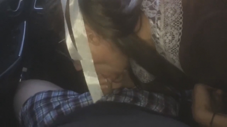 Водитель на новенькой мазде приметил прикрывающую голову тетрадками девчонку в школьной форме, идущую с учебы через лес. Было бы нечеловечно оставлять мокнуть младшее поколение под дождем. Правда она слабо подходит на роль школьницы и даже студентки, по лицу видно - повидавшая многое и явно за 18, но не в этом суть. Водитель уже через несколько секунд положил руку на ножку юной незнакомки, она приняла вербальную команду сосать. Так и трудилась ротиком, пока новый друг ненадолго не поставил ее раком, вновь вернувшись в кресло водителя и кончив от дрочки на губки русской чикули в маске, пытавшейся в начале разговаривать на английском.