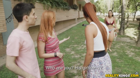 19-летний парнишка вместе с другом для сопровождения вышел поснимать вместо деревьев и птичек местных телочек, устраивающих пикники прямо посреди дворов на траве. Одна загорала оголив сиськи и стала первой жертвой мелкого хулигана. Пришлось спасаться бегством, но недалеко. Рядом еще две сучки без трусиков некоторое время не замечали направленную камеру телефона. Они-то и подумали, что та прибежавшая сучка его подружка. Объединив силы, латинские телочки отвели нахала в огромный пустующий гараж, где превосходные по формам шлюшки преподали отличный урок спермотоксикознику, выгнав его на улицу в чем мать родила.