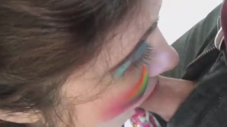 Толстая бабенка разукрасила лицо в поддержку сексуально левых движений. Она из себя строит всю такую невинность, радуется большому котику на ручках, а сама сразу же принялась ласкать собственную киску через трусики. Вместе с оператором чмошница проследовала в сортир, где посидела пару минут возле унитаза, на который села и начала сосать, да так глубоко, что затылком чуть не разбила унитазный бачок. Результатом отсоса явилась сперва на чуть-чуть высунутый язычок чмошной леди, которая продолжила ролик собственной мастурбацией, за что еще получила поток мочи в лицо и любовный поцелуй от приятеля.