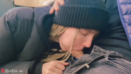 В центре Питера пробки - совсем не редкая вещь. Так как до следующей остановки еще ехать и ехать, белогривая Алена придумала идею для нового контента: сделать минет прямо в пустом троллейбусе, как раз уселись на самый задний ряд, а кондуктор чилит где-то в середине, считает мелочь. Потрогав приятеля за хуй, девица достает его из джинс, наклоняется так, чтобы ее голову не было видно через большое окно общественного транспорта и погнала показывать как довести мальчика до оргазма в считанные минуты минетом. Парнишка кончил в рот, оттуда сперма вся вытекла на пол. Оставалось только растереть ножкой субстанцию будто ничего и не было.