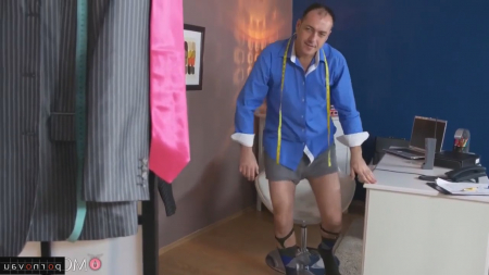 Богатый дядька пришел на замер, чтобы ателье ему пошило новый деловой костюм. Все обмеры делаются на тело в трусах и больше всего работницу заинтересовал пенис клиента, который она обозначила на чертеже. Представив его у себя в дырочке, азиатка спряталась за ширму, где захотелось помастурбировать, а так как она находилась всего в паре метров, не заметить ее было бы сложно, и тем более оставить неудовлетворенной. Своей вагиной на столе большегрудая произвела замер члена клиента, позволив после хорошего траха обкончать лицо вместе с очками.