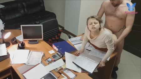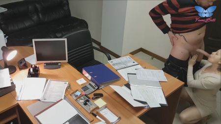 Короткостриженная коротышка на каблучках закрыла дверь в кабинет, заперевшись внутри с коллегой или может быть даже начальником. Нередкое явление когда девушки спят с высшими по рангу в цепи работы вечерком. Сперва россиянка успешно отсосала, после чего закинула одну ногу на стол, выставив мягкую попку для любовника. Сверху это снимает офисная камера, к которой у них есть доступ, чтобы дальше слить запись в интернет. Опосля работница перевернулась кверху пузом, уронив важные бумаги на стол. В такой позе ебырь обкончал ее лобок. Вот теперь можно отправляться домой.