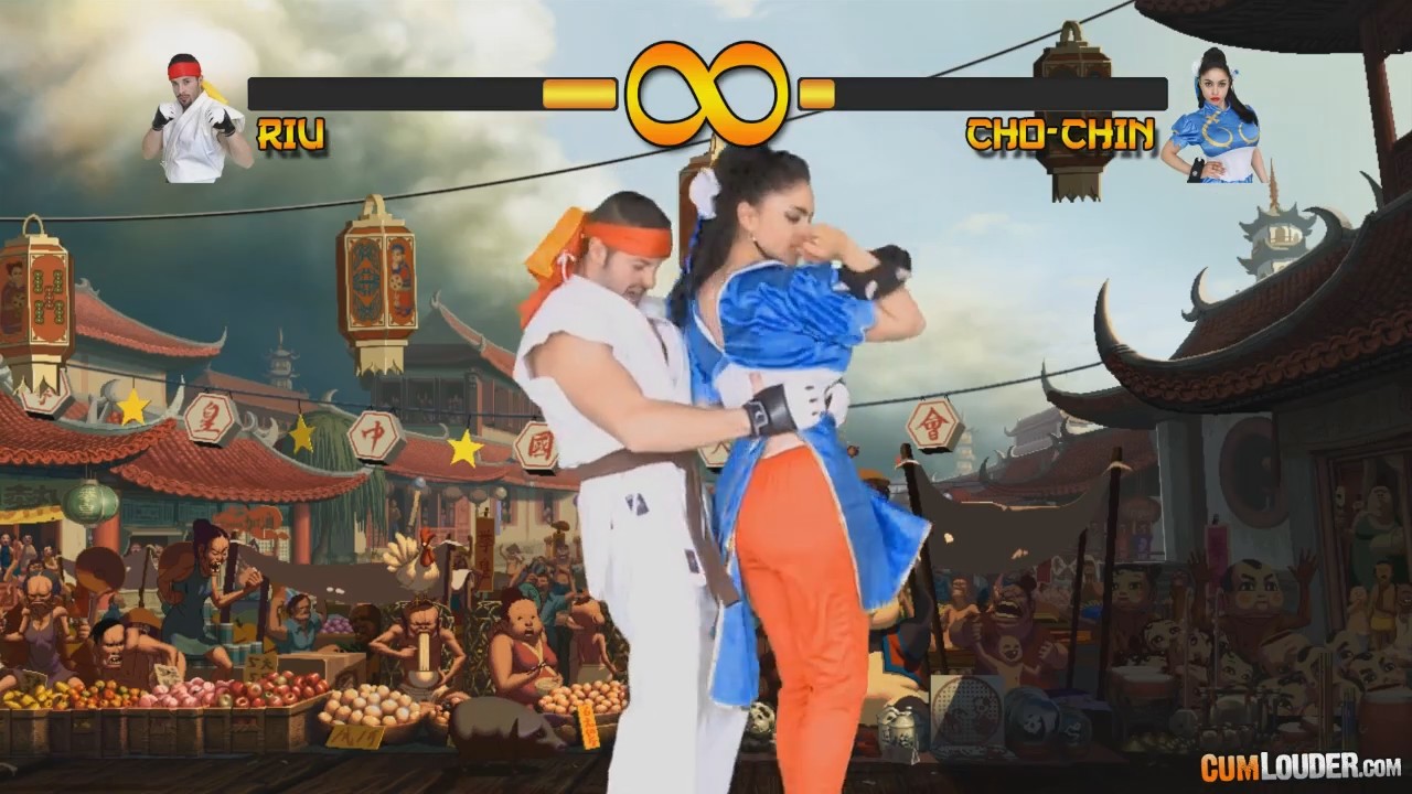 Мир замер в ожидании новой смертельной битвы из не самого популярного файтинга. Riu и Cho-Chin должны выяснить кто из них станет главным чемпионом железного кулака Cum Fighter! У каждого припасено несколько секретов, но битва начинает развиваться совсем не в той плоскости, какую задумывали создатели. Они начали дико трахаться на фоне параллакс-фона! Да, девочка получает жесточайший урон от члена эффективного бойца прямиком в пиздень, он же однозначно добивает им латинку, представленную как китаянка, спермой в рот! Такого сражения еще не видал искушенный игрок!