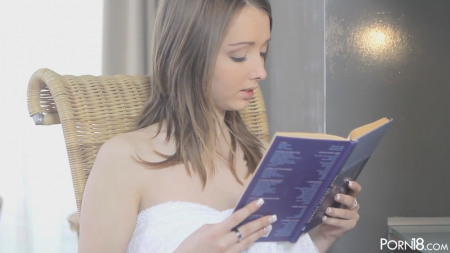 Девчонка проснулась в объятиях своего молодого человека. Тихонько вылезая из-под руки, куколка отправилась принять душ, поглаживая огромную для такой фигуры грудь. Вскоре она вновь вернулась в комнату почитать книгу пока любимый не встанет с кровати. Он бесшумно подошел сзади, поцеловал телочку и снял с груди полотенец. Мальчик первый занялся оральным удовлетворением, после чего его подружка сделала минет, слегка болтая сиськами, смотрящими вниз сосками. Лишь небольшая часть ролика посвящена классическому сексу в белых тонах, после которого бойфренд кончил на приподнятые кверху дойки.