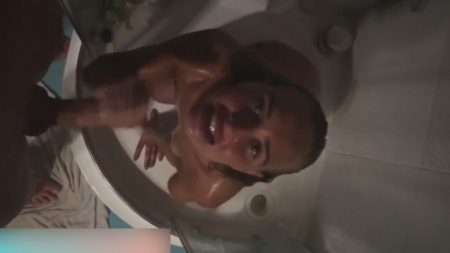 Подруга до запуска съемки успела побаловаться душиком, теперь очередь кайфовать за молодым человеком, который вытащил хуй, чтобы она сидя на полу отсосала его. Абсолютно без слов вторая половинка знает чего нужно делать и гоняет параллельно рукой шкуру, глядя блядским взглядом вверх. Напряженный член подергивается от удовольствия и, когда пришла пора заканчивать это дело, душевая хуесоска (почти уверены, что вы прочитали как "дешевая хуесоска") хотела сама заставить кончить на язык, но парень взялся сам наяривать и спустил на лобешник.
