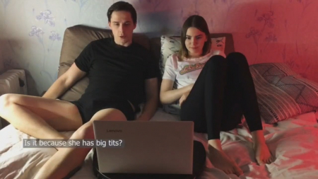 Парочка русских студентов, мальчик и девочка, собрались вместе посмотреть кинцо на ноутбуке, расположившись на кровати в метре друг от друга. Парень постоянно что-то комментирует с экрана, а подружка ему поддакивает, а сама думает как бы так извернуться, чтобы ему отсосать и не остаться в шлюхах. Сперва она просто провела рукой по члену через трусы, потом приложила больше усилий. Несмотря на просьбу не отвлекать, она решила взять в рот инициативу, сделав из маленького сморщенного писюна достоинство побольше. Скучное кинцо отключили и телочка, пососав крупным планом, приподняла футболку, чтобы ей кончили между маленьких сисек. В конце ждут неудачные дубли как в комедии с Джеки Чаном.