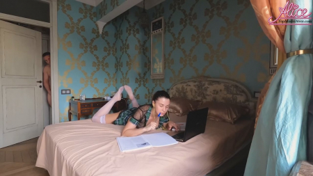 В комнате перед ноутбуком и в наушниках AliceKellyXXX занимается учебой, записывая себе некоторые результаты в большой блокнот. Вновь она забыла запереть за собой дверь в дворянского вида комнату и туда приперся голый братец. Он прилично старше самой девушки, но не очень умный - для него кажется нормальным тихонько обойти врага сзади и пенетрировать его. Именно так он и поступил с сестрой. Та лишь только мычала в ответ (чтобы не спалиться о своей стране происхождения), но не отпихивала бездельника. Впереди вас ждет любительский секс с отдаленной камеры на штативе и стоны девчули под гнетом запретного кайфа.