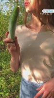 Больше чем фаллоимитаторами женщины мастурбируют лишь огурцами, тщательно выбирая на рынке или в магазине по габаритам. Дабы не занести всякую заразу, требуется презерватив, который не забыла с собой прихватить юная деревенская жительница в сопровождении бойфренда, выступившего в роли домашнего оператора с телефоном. Он вживую наслаждается видом трахающей себя зеленым овощем малышки, которая под веселое щебетание птичек постанывает в лесу сидя на травке и стоя повернувшись задом. Клиторок так набух, что любое прикосновение может оказаться приятным до оргазма.