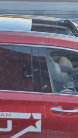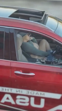 Случилось так, что сиськастая бабенка не смогла дотерпеть до дома и начала мастурбировать прямо на ходу в машине, зачетно раздвинув ноги и вывалив грудь наружу. А может быть она именно так и хотела, чтобы водители других автомобилей обгоняя смотрели на ее шикарное тело. Повезло дальнобойщику, который и записал данное видео - его тачка будет повыше и оттуда все видно. Подумала ли параллельно едущая женщина о такой скрытой возможности техники? Вряд ли! Парень ссыканул убрав телефон, когда в его сторону неожиданно обернулись, а зря, могло быть крутое продолжение.