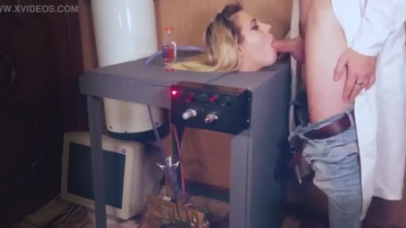 Ученый, двигающийся в реально правильном направлении мысли создал чудо-аппарат с несколькими тумблерами и главной вишенкой на торте - женской головой с пухлыми щеками. Запустив сбоящую технику, он тут же достает член из джинс и пихает в рот головешке, которая, облизываясь, начинает выполнять свое предназначение. Как не пихай - штуковина не пиздит и не кашляет (еще постанывает), только двигать телом приходится, но, может быть, в следующих версиях добавится новое. А сейчас кандидат в получение важной премии накончал на язык и отключил технику до следующего раза.